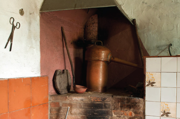 By legalizing their distillery they have separated things very well: the aguardente that runs to the pitcher from the running water that comes out of the tap. Even the fruit after it is picked ferments in a different space from the one where the distillation process takes place, and the drink, once distilled, is kept in a specific place. The only thing that is not governed by law is the table standing in the centre of the cellar, with a good spread and a crocheted tablecloth and glasses always ready to toast the visitor with a drop of good aguardente.