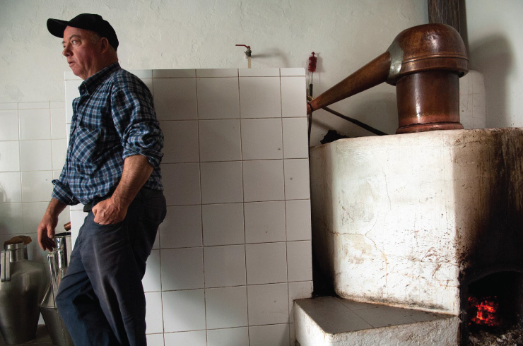 José Manuel Elias has been distilling medronho for over thirty years but acknowledges that after all this time it is not as good as he would like it to be. That is because nature, regardless of how exact men are, always has a word to say. If there are years that it rains in the right quantity and at the right time and the fruit is born with the precise sweetness, there are others that are drier and therefore produce fruit that is also more dry and tasteless. It is at these times that the beverage that drips into the distiller’s tank is not as plentiful or as sweet as he would like it to be. But outside this uncontrollable detail, José Elias controls the whole process in a methodical and dedicated fashion.