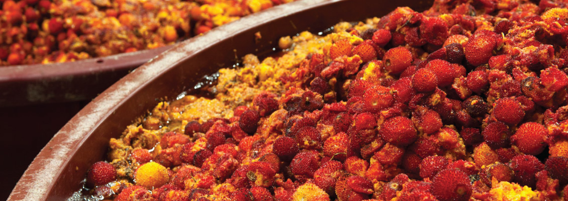 The work starts very early and is normally done in groups. Relatives, friends and neighbours get together to pick the berries on their own land or on leased or borrowed land located in the council or nearby. They drive as far as the land allows them; then they do the rest on foot. Whoever owns or knows of sunny strawberry tree groves has an advantage. This is where the sweetest fruit can be found.