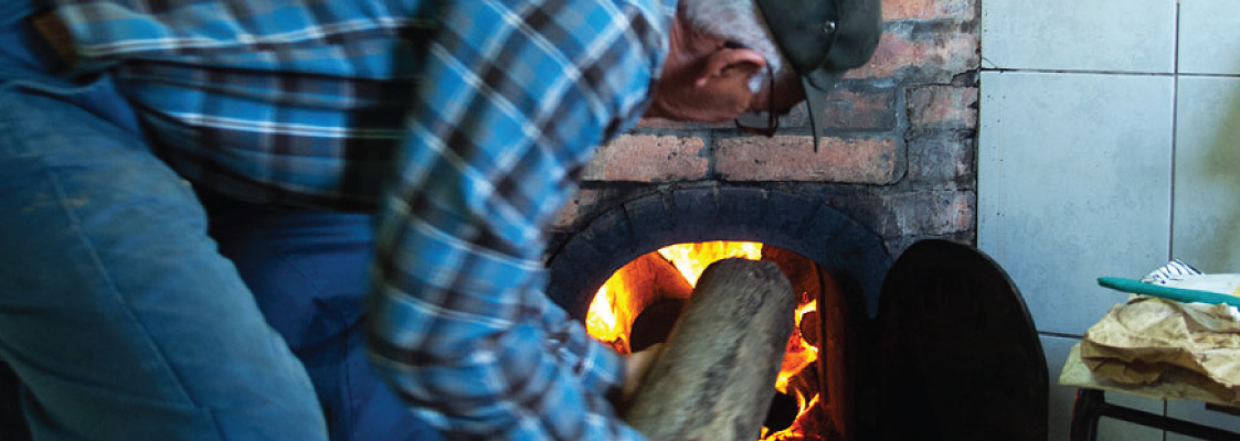 Now with everything ready the distiller can fill the boiler with the mash of fermented medronho. A 120-litre boiler has a capacity for seven arrobas of mash, or a little over 100 kilos, beside one or two cáceres of water and some litres of low percent proof aguardente obtained in the last phase from the previous distillate. Once the pot is full, an element now comes into play that is essential to separate alcohol and fermented fruit: fire.