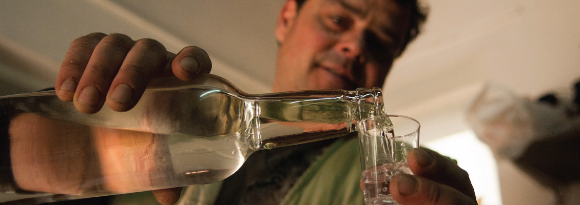 Once at their destination, the men push through the woods in pursuit of the best bushes. The berries are picked one by one, with no stocks or leaves, until they fill the bucket or sack they carry around their necks or waists, emptying it from time to time into a common barrel. On the same tree there may be flowers and fruit at different stages of ripeness. The distillers are only interested in the fire-coloured berries, the only ones that have reached the desired level of maturity. One of the golden rules in this phase is to pick only the fruit that is ripe. Not only will it produce more of the drink but it will also be smoother.